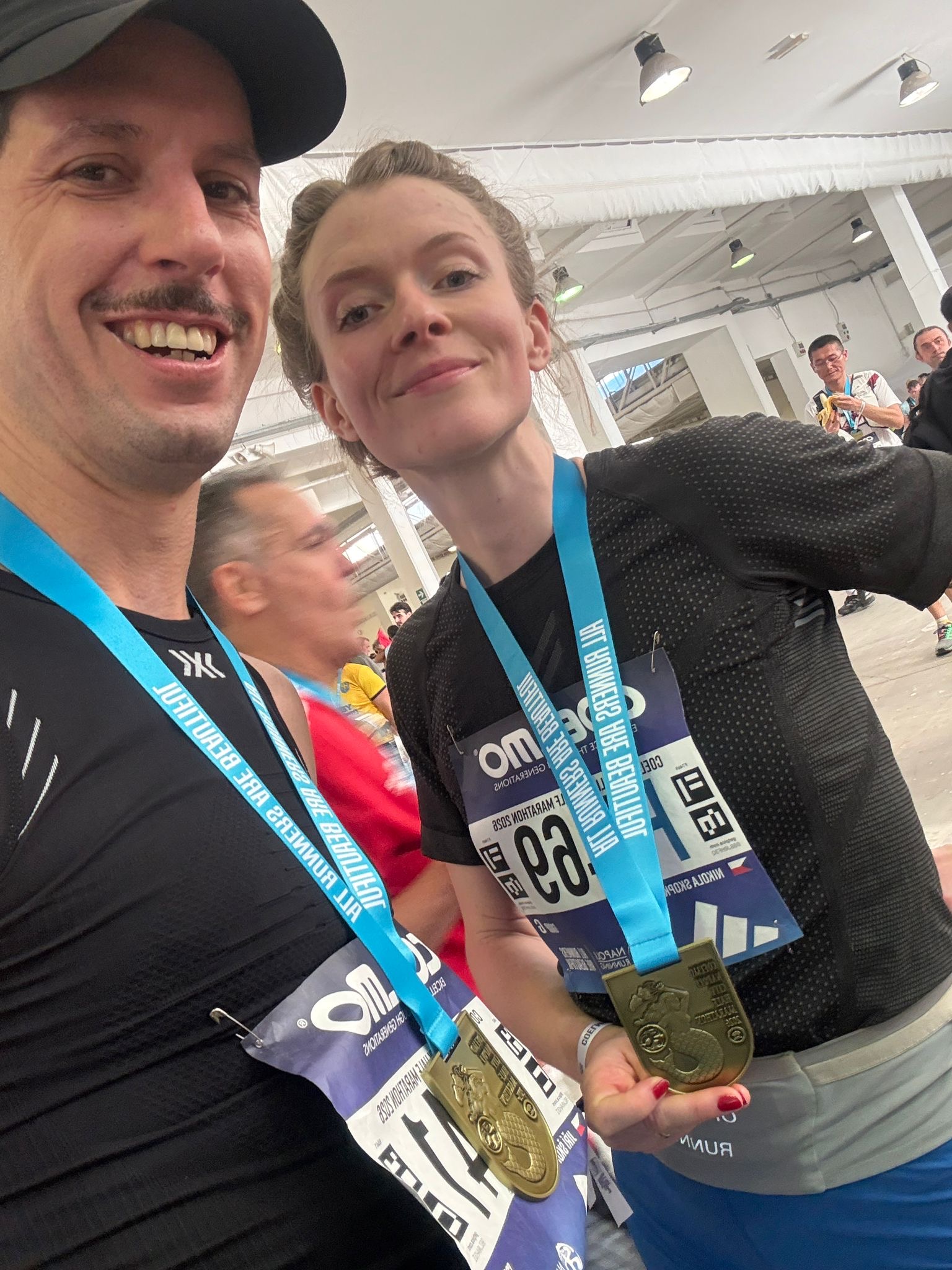 S hrdostí oznamujeme, že na start se postavili i dva naši klienti Nikola a Jiří Škopkovi – jihočeští běžci a manželé, kteří i přes svou pracovní vytíženost dokáží plnit tréninkový program vždy na jedničku. Proto nás jejich výsledek nepřekvapil, ale za to velmi potěšil. Do závodu jsme šli s jasnou strategií: první polovinu lehce zadržet a ve druhé části vystupňovat tempo dle aktuálního stavu – cílem byl negativní split. To oba zvládli i přes nahuštěné startovní pole dokonale a odměnou jim byly nové osobní rekordy.